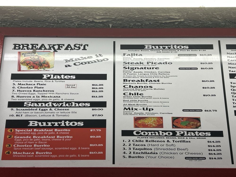 Pastrami, cheese, spicy green chile sauce, tomatoes and guacamole.